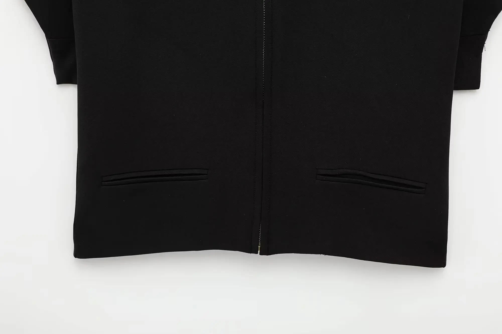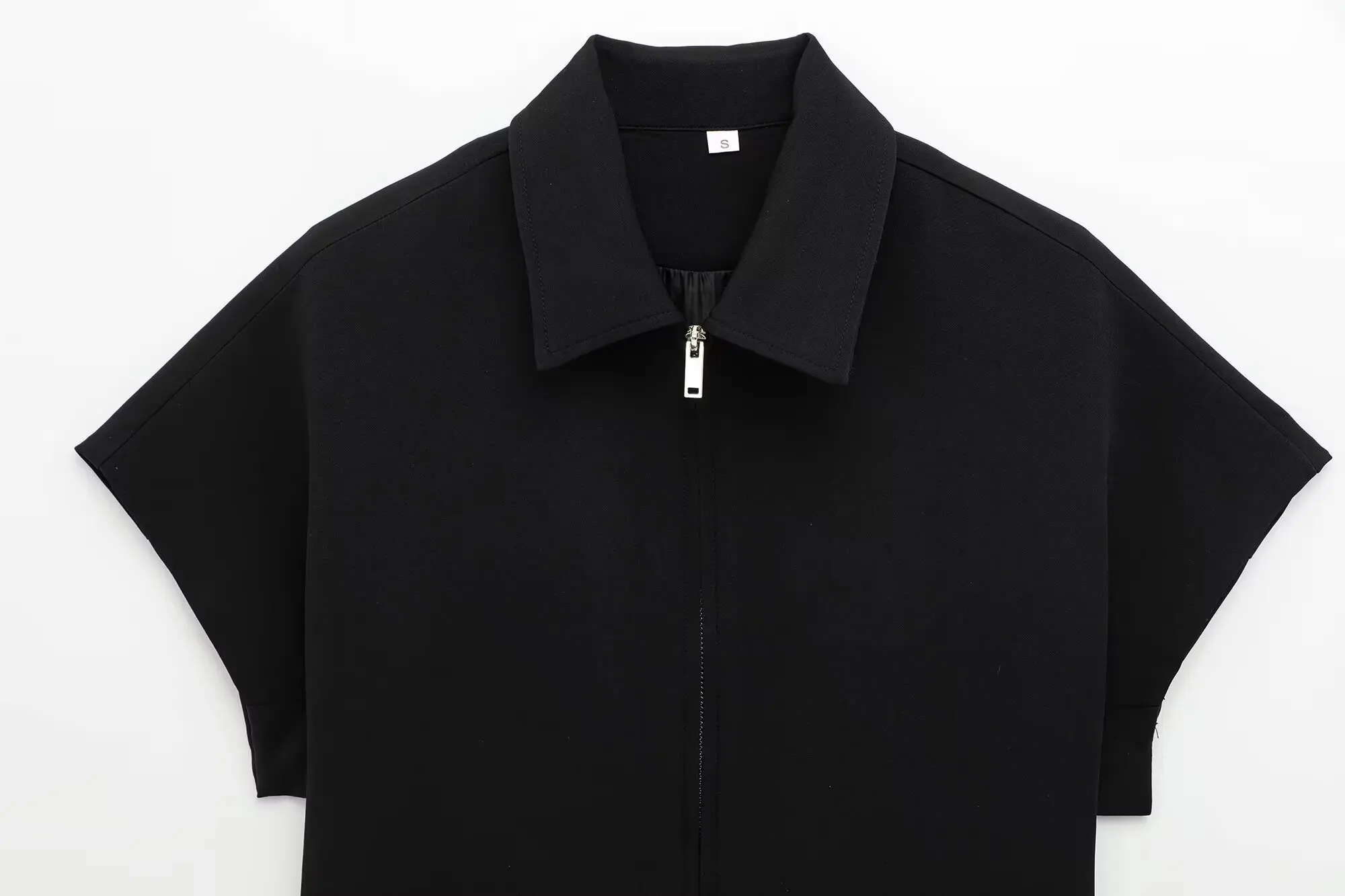 HipSeam Women Lapel Collar Short Jacket Women's Cropped Short Collared Jackets With Zipper Lady Short Sleeve Coat Female Jacket