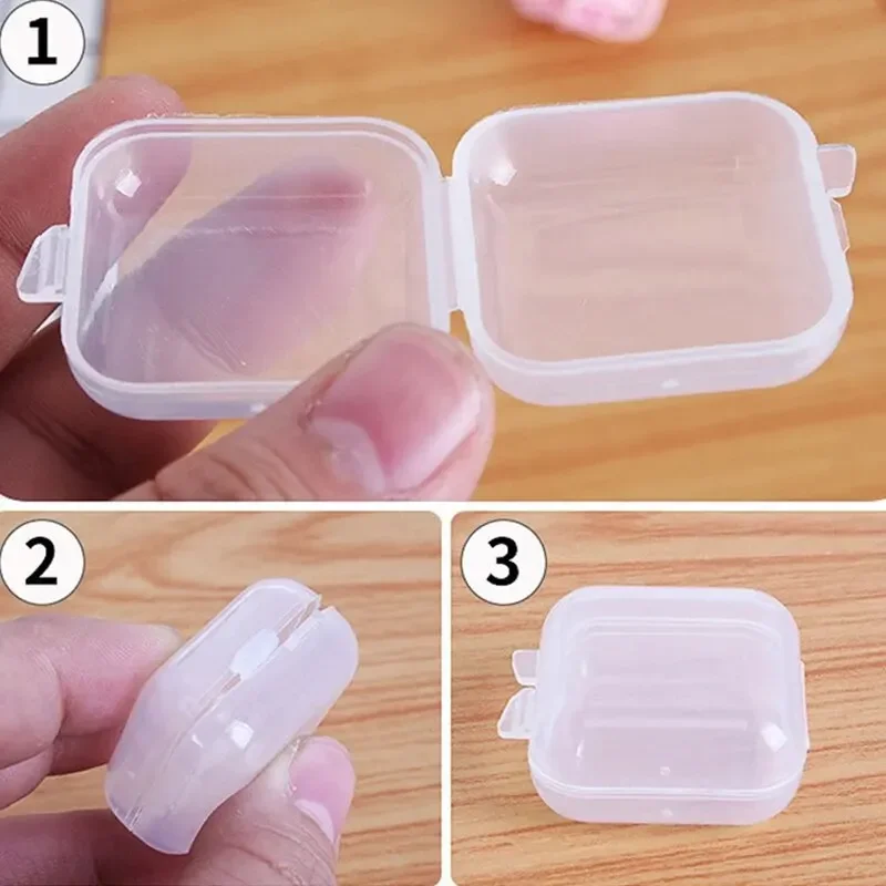 Mini Plastic Jewelry Storage Box Square Transparent Flip Portable Pill Container Jewelry Holder Packaging Earrings Display Case