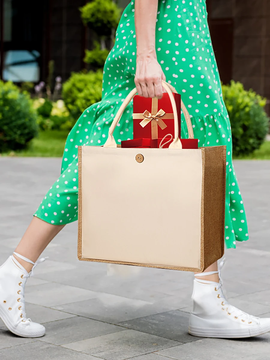 New linen handbags large capacity jute handbags imitation linen shopping bag travel organizer picnic bag